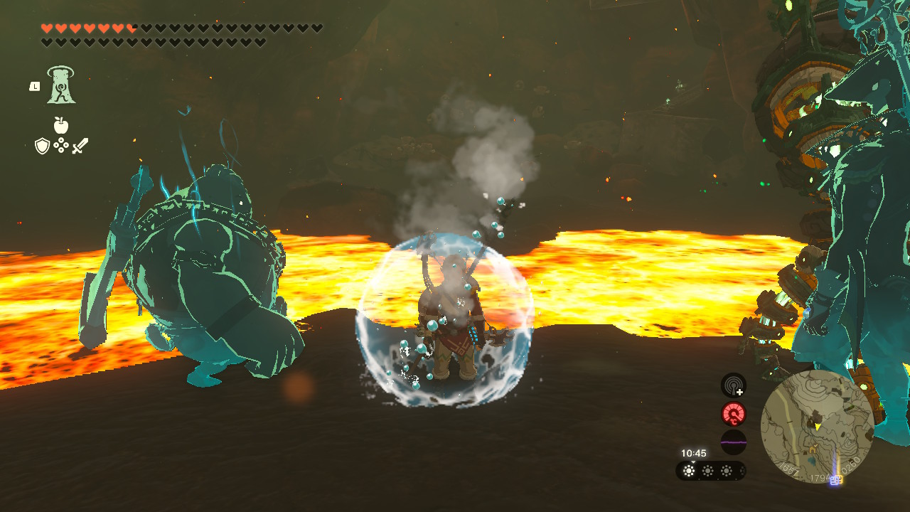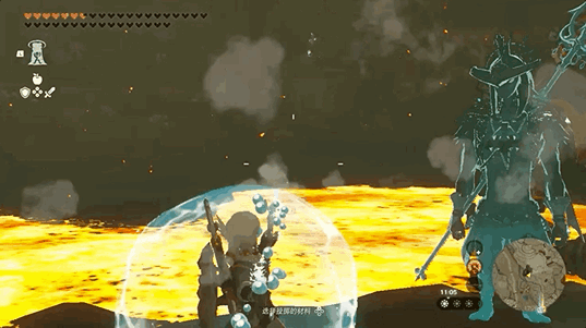 借助这个能力,我们可以在高温地区安全地发射炸弹箭!不过还是不能投掷炸弹花,因为投掷了会在林克身边爆炸,虽然不会伤到林克,但会把林克的护罩炸没。