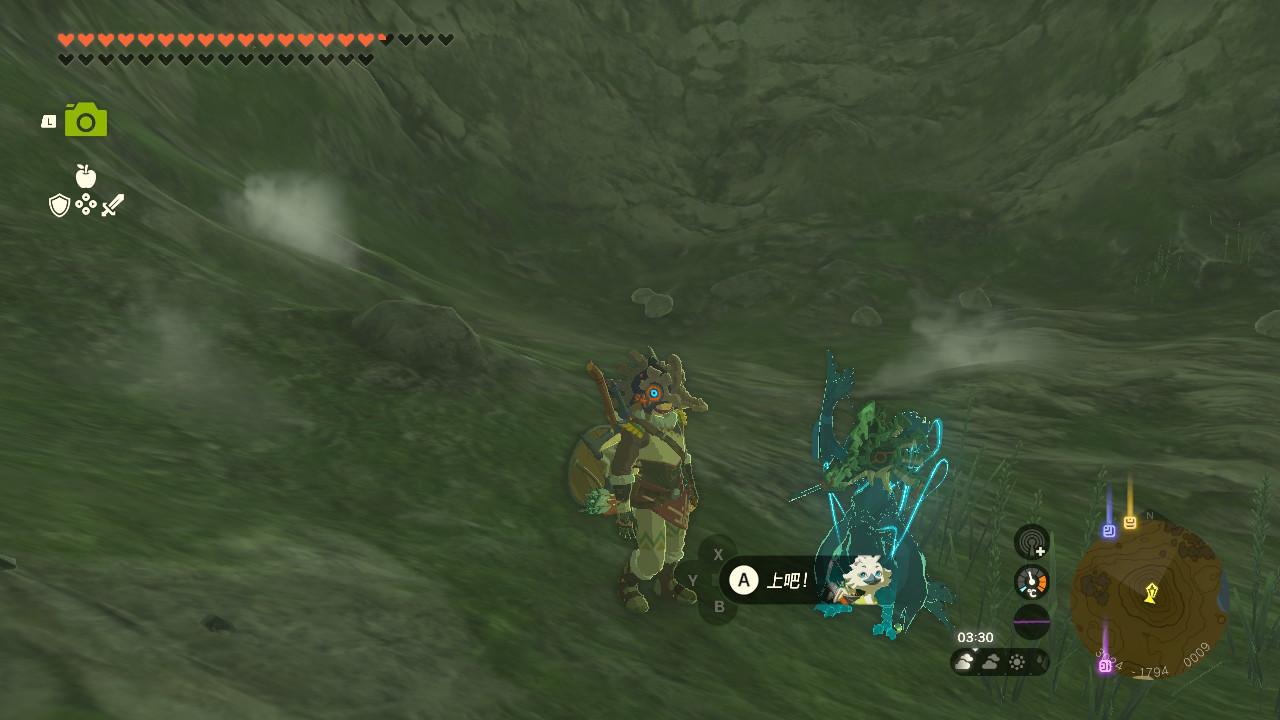 类似的道理,林克也可以骑着米涅鲁,平安无事地通过河流、熔岩、沼泽等地形(因为长高了);只要不是没过林克的深度,都是OK的。