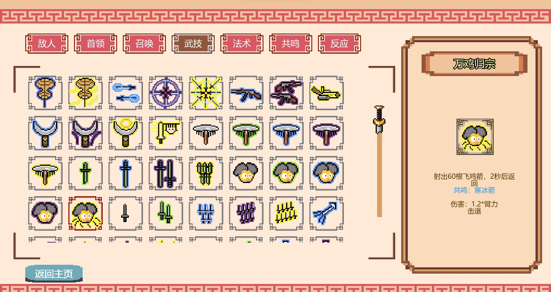 特定组合产生的增益分为两种,【共鸣】与【召唤】。【共鸣】是特定的具有组合关系的一对【召唤】或者【武技】产生的攻击能力,比如当你同时拥有【武技】中的【小飞棍来啦】和【左轮枪】,你就拥有强力的【共鸣】能力【枪棍乱舞】,这些强大能力能提高战力,你可以尽可能多凑齐【共鸣】来保障自己通关。