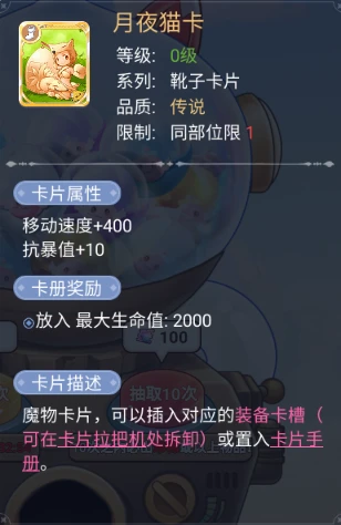 首先,我们来谈谈游戏中常见的卡片类型。根据属性效果的不同,卡片主要分为三大类:攻击卡片、防御卡片和辅助卡片。攻击卡片能增加玩家的攻击力,让你的每一次攻击都更具威力;防御卡片则能提高玩家的防御力,让你的身板更加硬朗;而辅助卡片则能为玩家提供各种特殊效果,如增加移动速度、恢复生命值等。