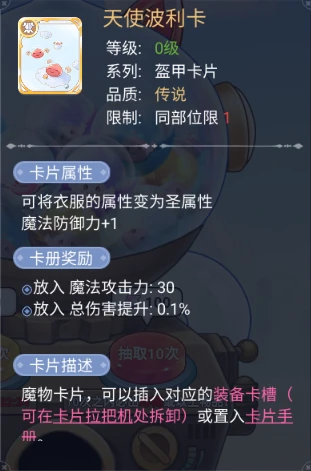 此外,游戏中还有一种神奇卡片——“属性转变卡”。这种卡片具有独特的属性转变效果,可以让玩家在一定时间内转变自身的属性。例如,“圣属性转变卡”可以让玩家在一定时间内将自身属性转变为圣属性,以此来应对不同属性的敌人。