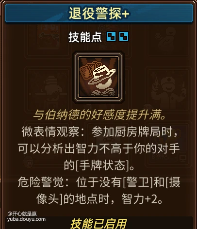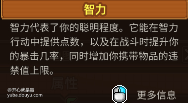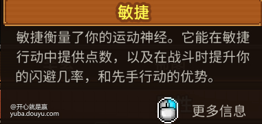 敏捷:敏捷能致富,玩偷窃流,敏捷高了偷窃几率能提高到百分百,个人觉得是最重要的属性,几个结局都要用到